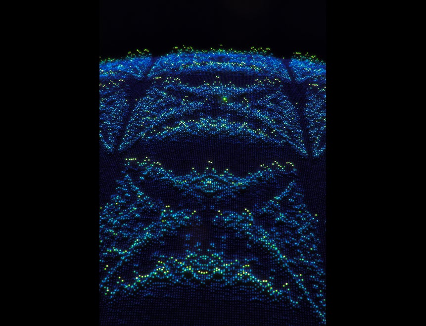 In a process akin to musicians striking a tuning fork and listening for the main note, the researchers “hit” their nine-qubit system with photons and waited as the system evolved to reveal its fundamental frequencies.